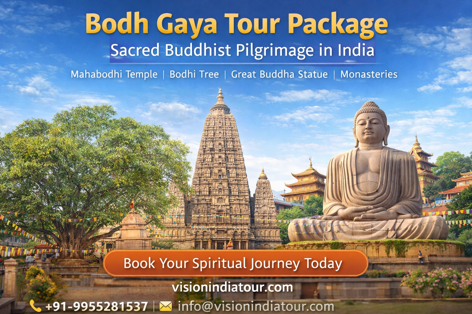Bodh Gaya Tour Package by https://visionindiatour.com offers an unforgettable spiritual journey to the sacred land where Lord Buddha attained enlightenment. Located in the Indian state of Bihar, Bodh Gaya is one of the most revered pilgrimage destinations for Buddhists across the globe. This holy town attracts monks, pilgrims, and travelers seeking peace, wisdom, and spiritual...Read More